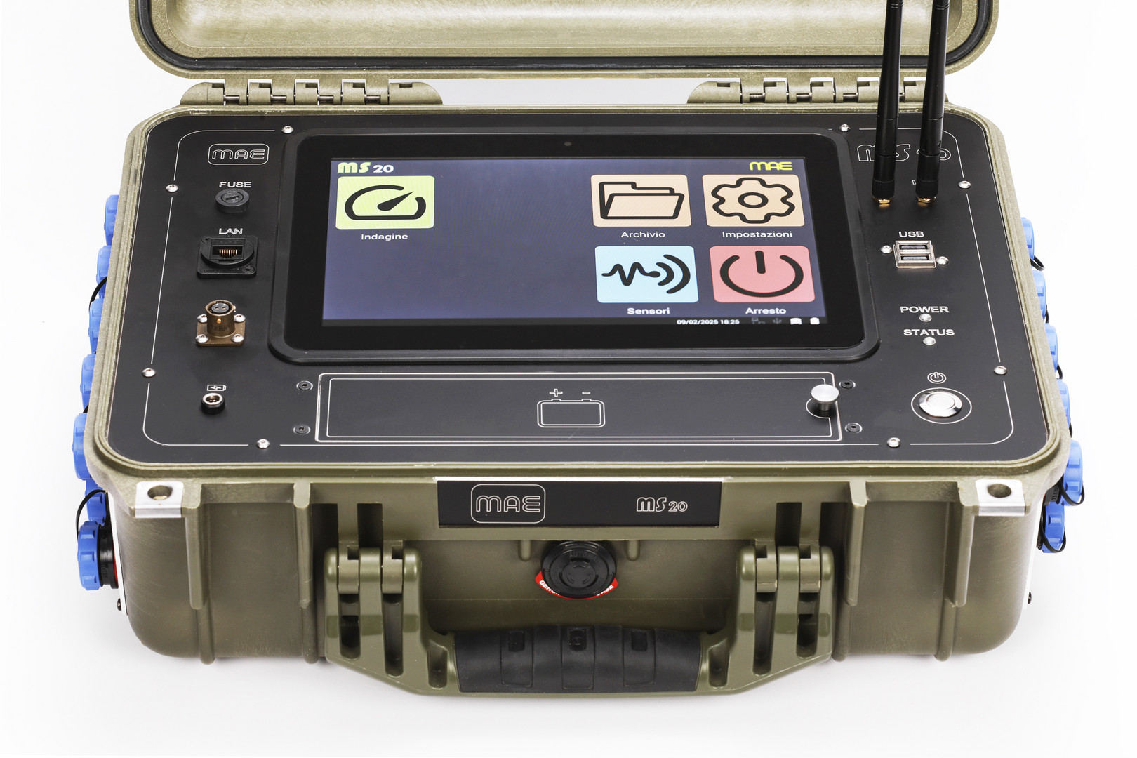 El MAE MS20 es un sistema de adquisición de datos portátil de última generación, disponible en 10 o 20 canales. Combina una resolución excepcional de 24 bits con una pantalla táctil de 10 pulgadas para monitoreo en tiempo real, ideal para pruebas de carga y control de fisuras con total independencia en laboratorio y campo.