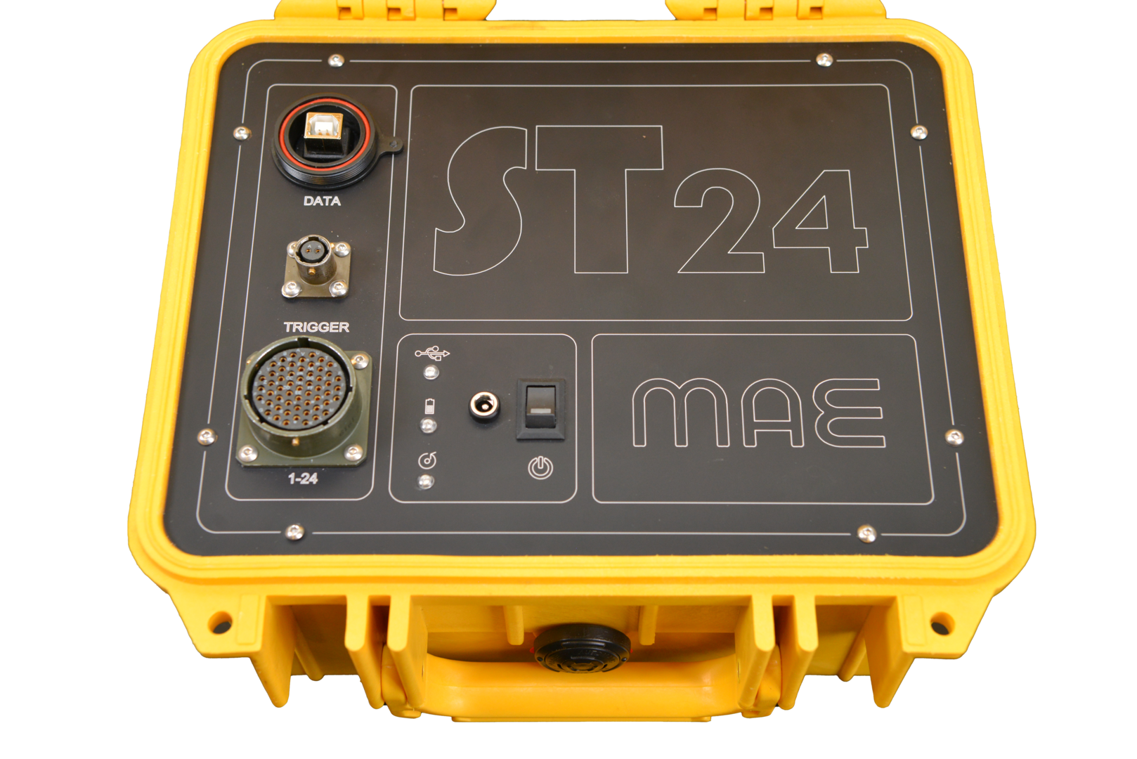 El MAE ST24 es un sismógrafo digital compacto de 24 bits diseñado para ejecutar métodos de prospección sísmica activa y pasiva. Con capacidad para gestionar 24 canales (ampliables a 48), este equipo portátil de 3.5 kg es la solución definitiva para refracción, MASW, Re.Mi y tomografía, permitiendo un control total de la calidad de datos directamente desde una PC en campo.