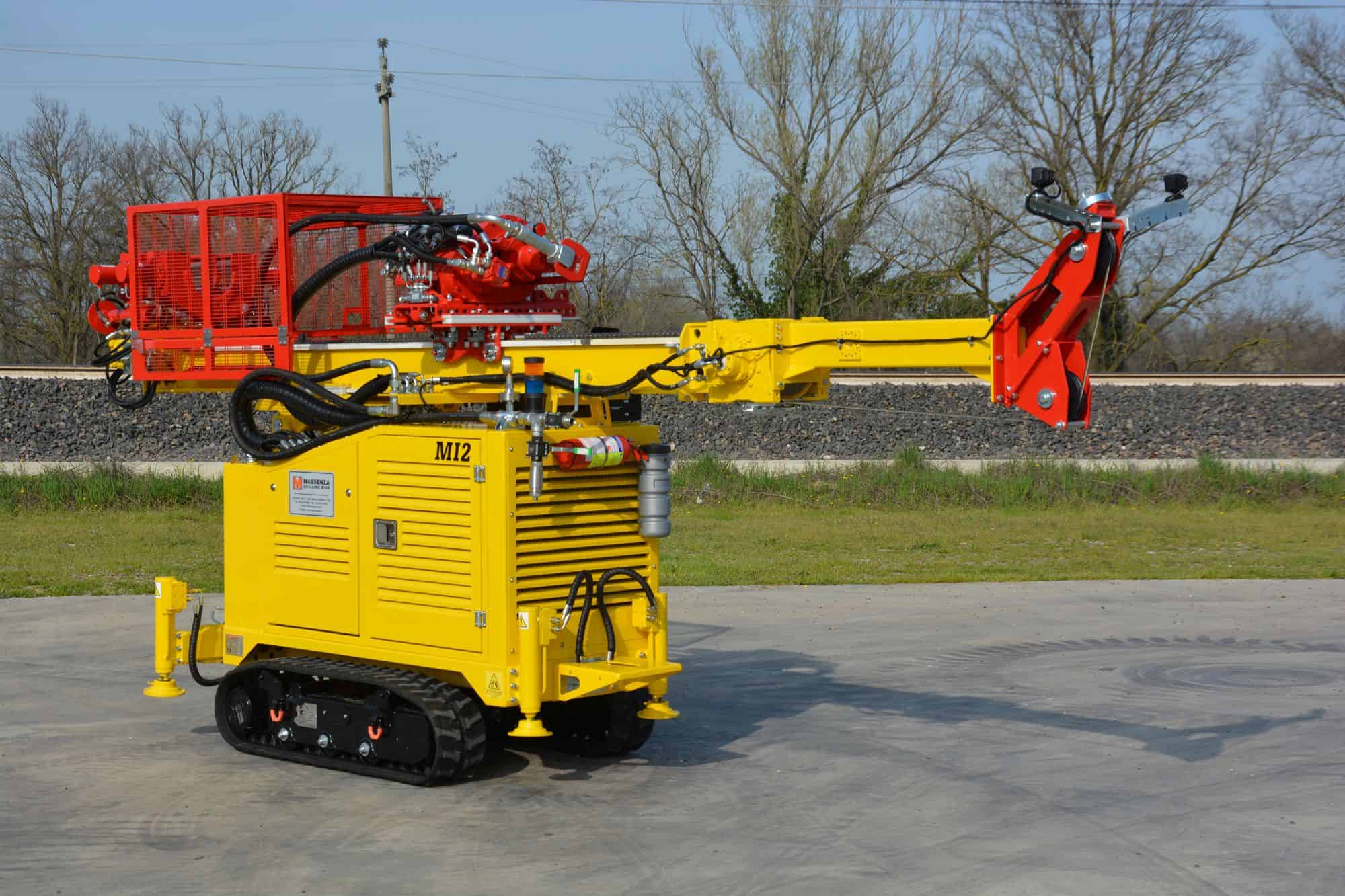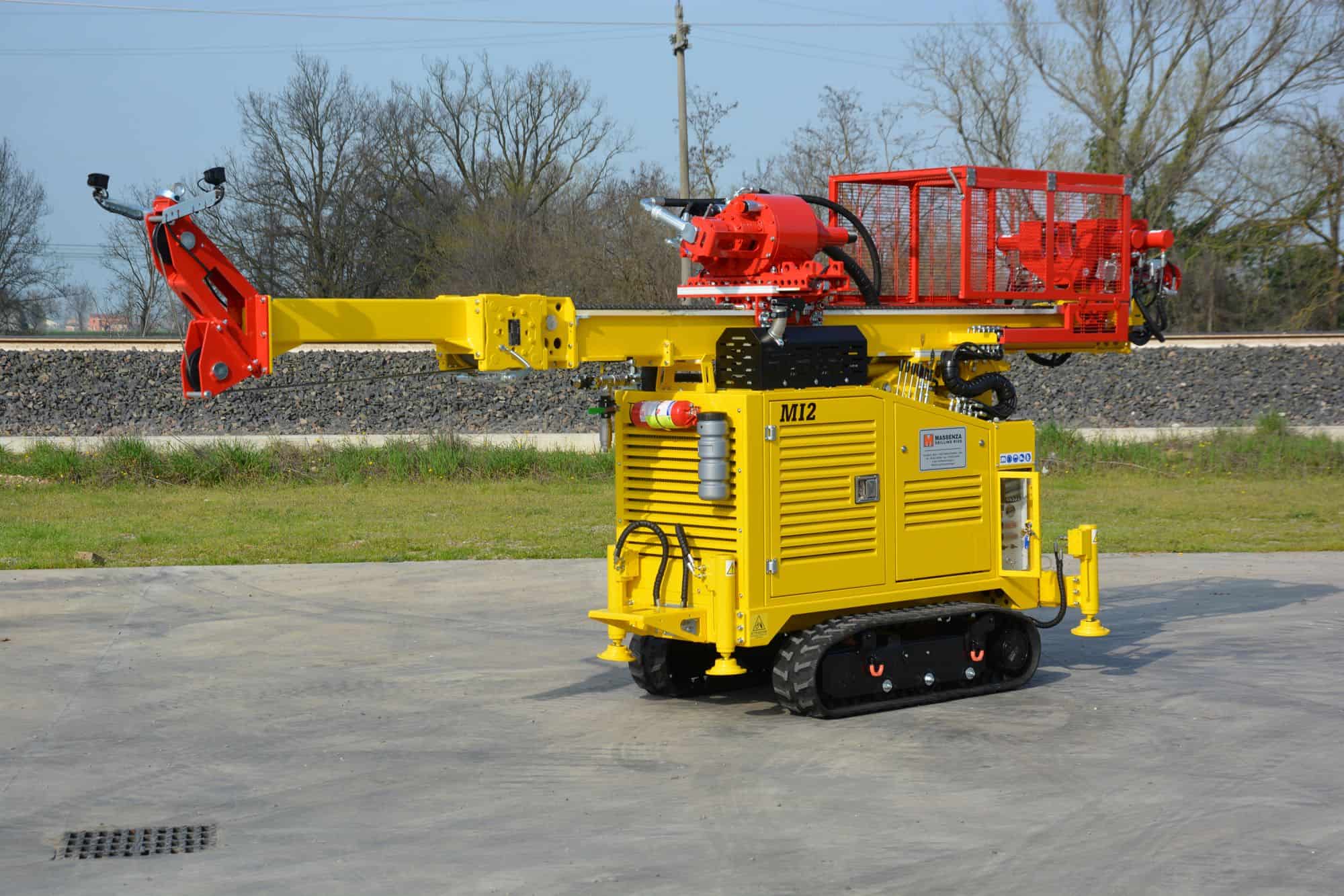 La perforadora Massenza MI2 es un equipo geotécnico compacto y potente de orugas, gestionado en su totalidad mediante radiocontrol. Diseñada para integrar en un solo chasis cabezal de rotación para testigos, martillo hidráulico y SPT automático, su peso optimizado de 2.650 kg permite transportarla fácilmente en un remolque estándar de 3.500 kg, ideal para maniobrar en espacios reducidos y urbanos.