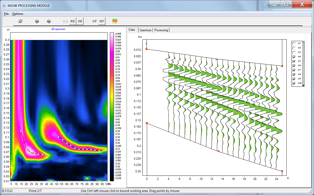 | Módulos analíticos integrados | Incluye procesamiento MASW/ReMi, tomografía de atenuación, análisis de anisotropía de velocidad, VSP (Down-hole), método t0 de refracción simple y aplicación extra para el método HVSR (Nakamura). |